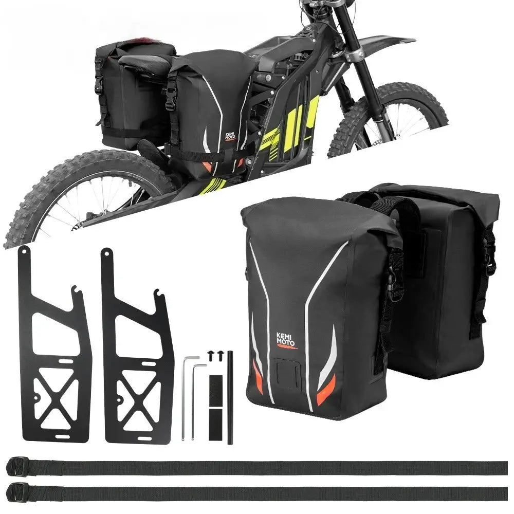 Carry your essentials with confidence using the SurRonshop 12L Saddlebag with Support Bracket for Sur-Ron Light Bee X/S, X160, and X260. This set includes a rugged, waterproof 12L side bag and a durable support bracket for stable mounting, even on rough terrain. Perfect for tools, gear, or everyday essentials — designed for secure fitment and off-road adventures.