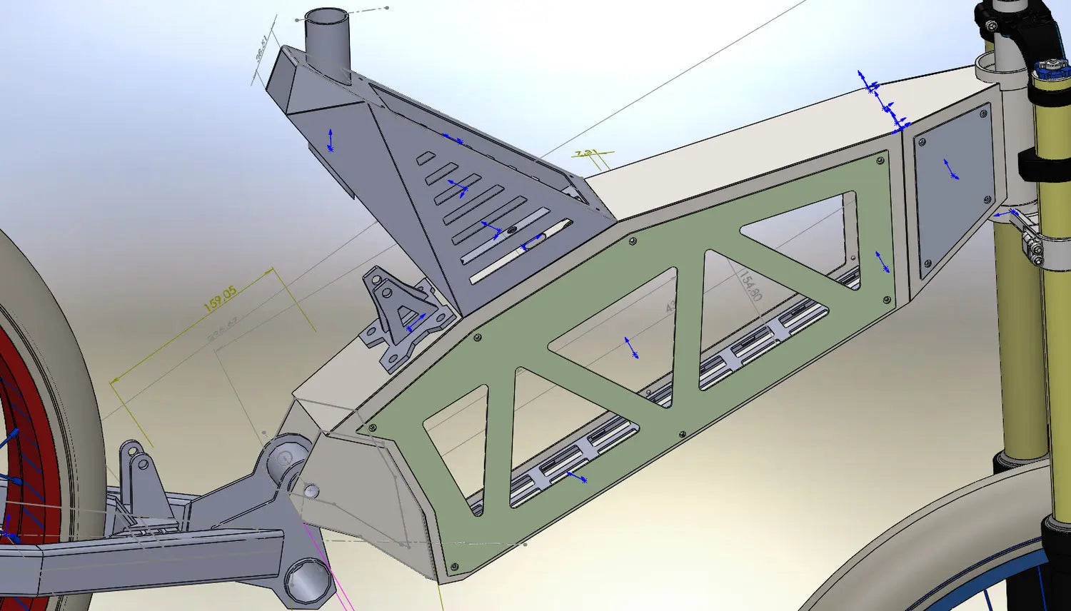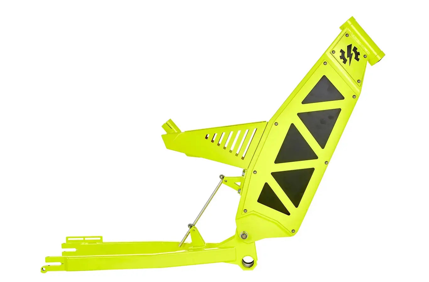 This frame is specifically designed based to satisfy the needs of users to move quickly and comfortably over rough terrain. The aim was to make it as lightweight as possible while still allowing for the installation of the most powerful motors. The strength is sufficient for riding on rough terrain as well as on highways. The battery compartment volume is enough to fit 180 18650 cells, providing over 2000W*h of energy with a frame width of 90mm. You can also fit 240 cells using a 120mm wide frame.