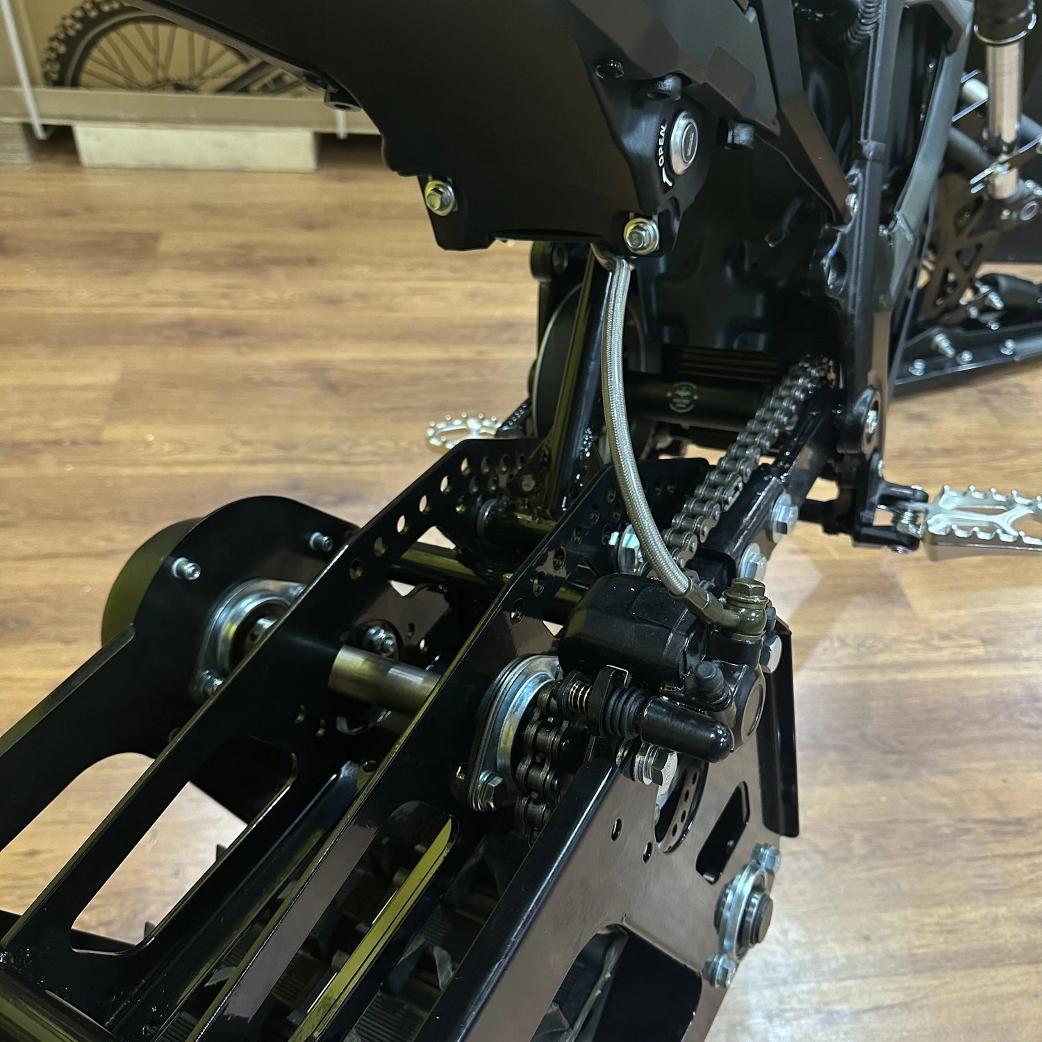 Sur-Ron Ultra Bee Continuous track kit is a great investment to extend the season and get even more out of your bike. Get the opportunity to ride among with the snow-mobiles, explore the nature and reach places where nobody has ever been