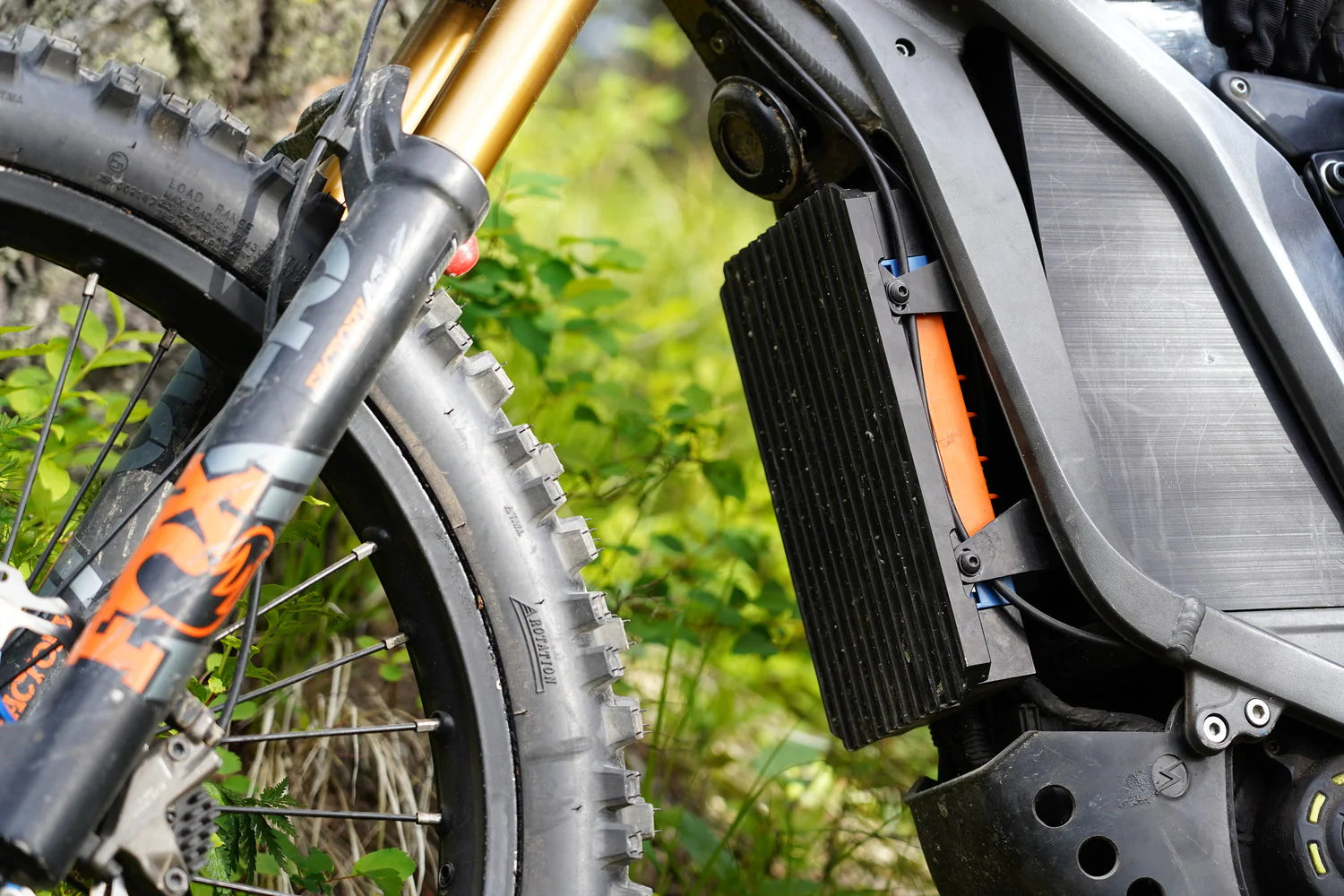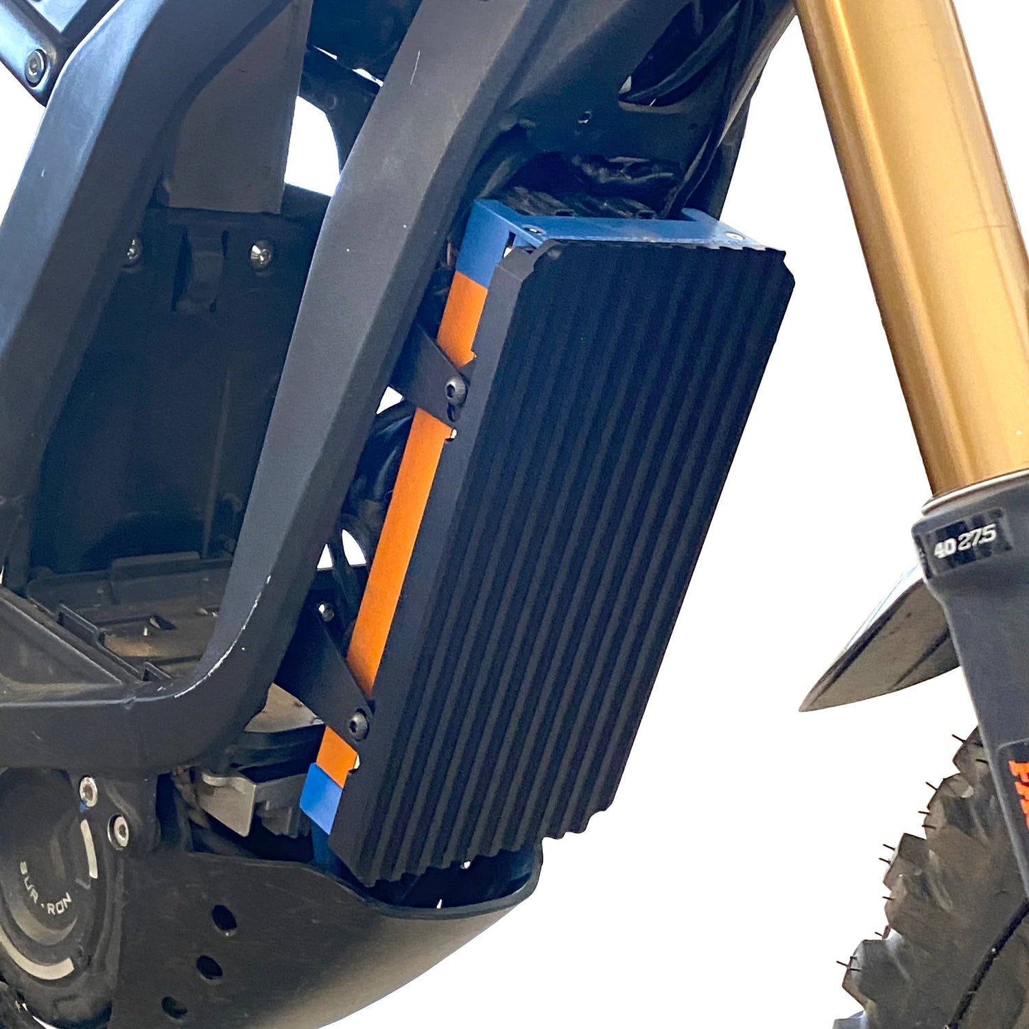 6061 Aluminum CNC machined ASI BAC4000/BAC8000 mounting kit for Sur Ron. The bracket fully protects the delicate front of the ASI controller from impacts. Mounts to existing holes on the frame with included aluminum mounting arms (no plastic spacers). All parts are type 2 anodized. Simple install and includes all mounting hardware.