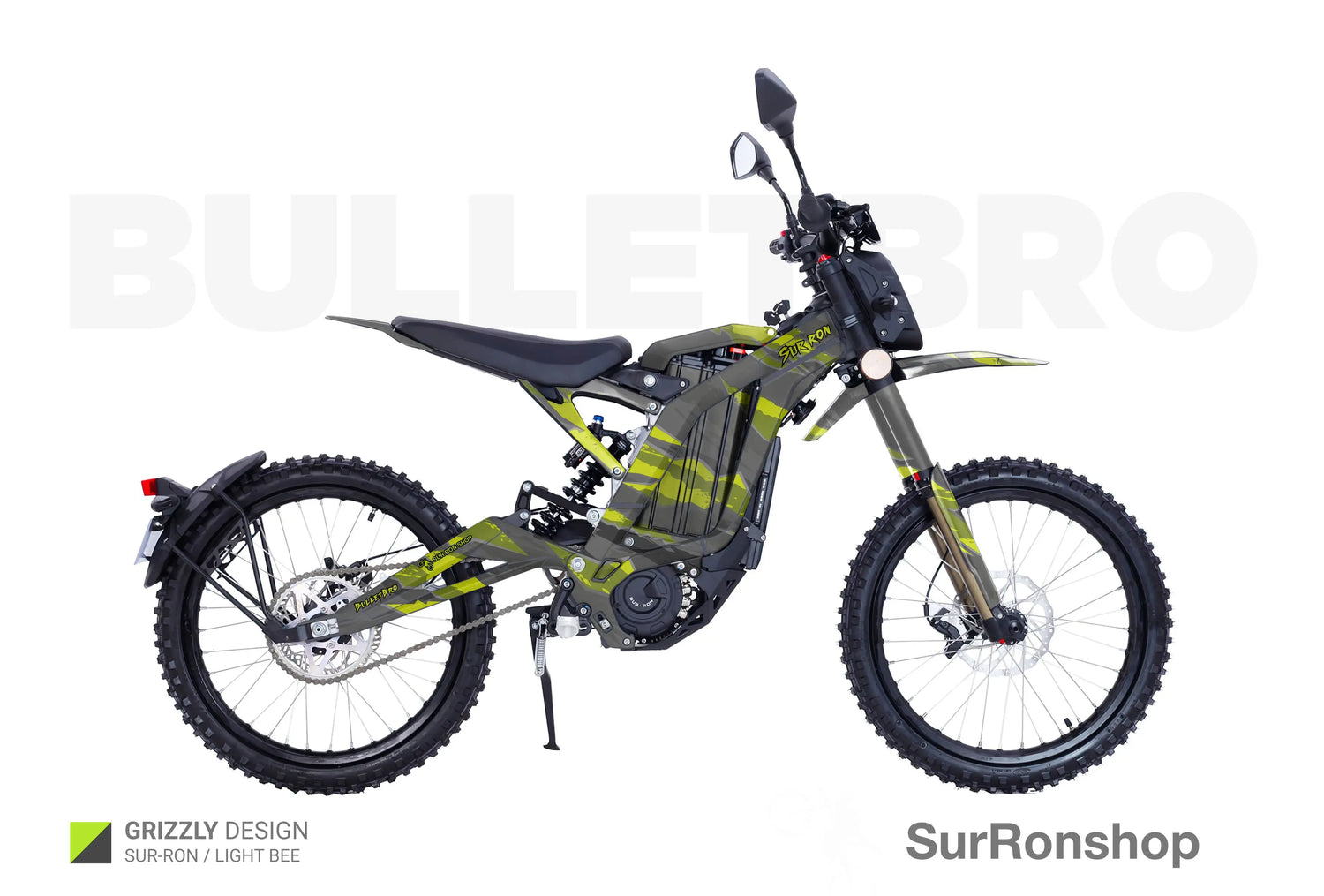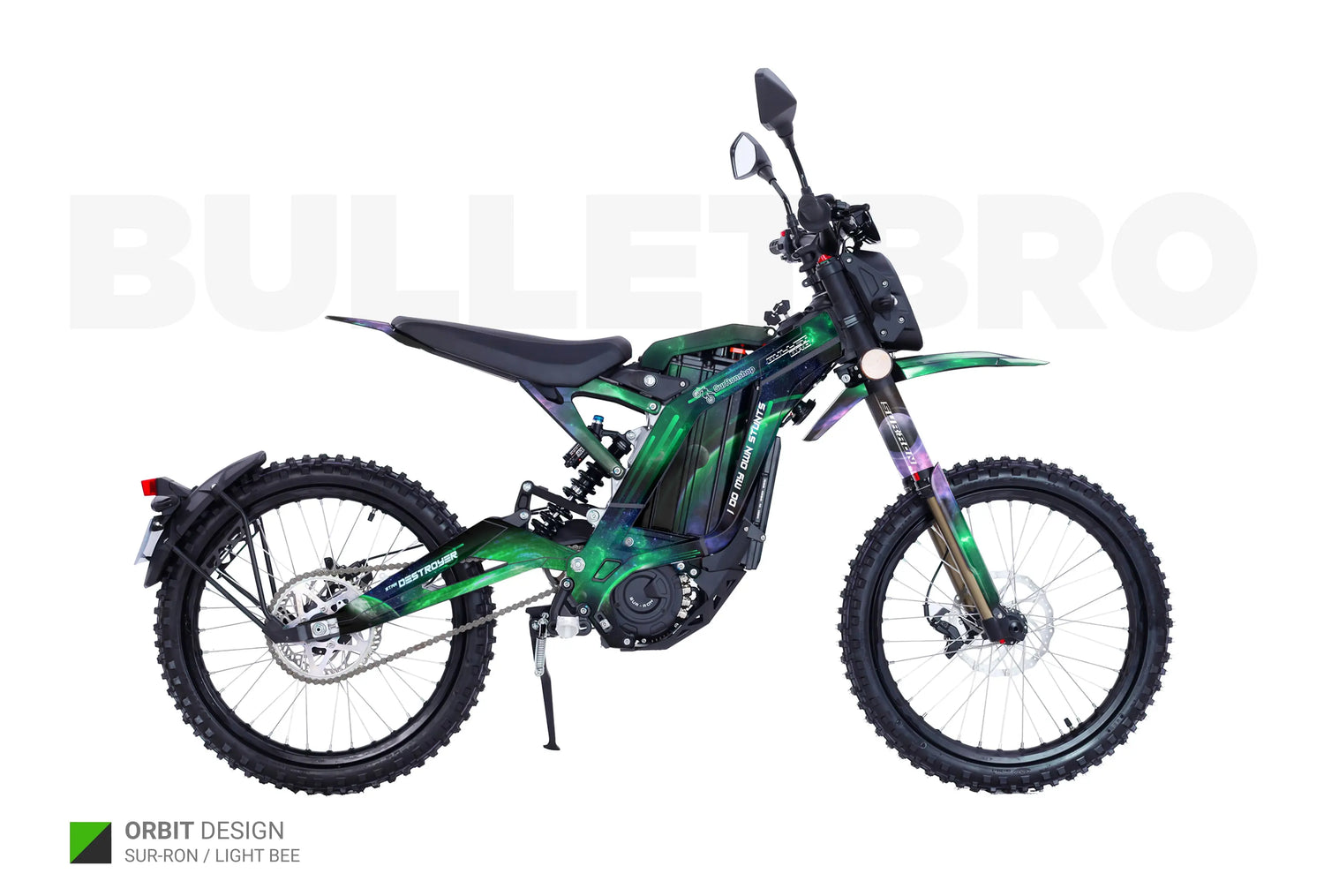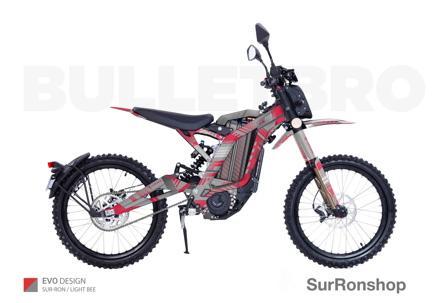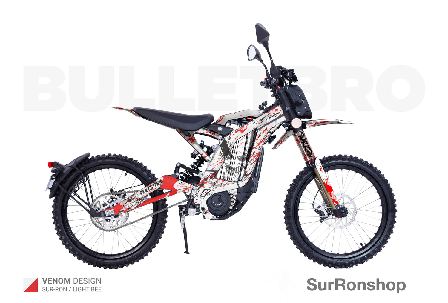 - "Design from the catalog ( 1-84 ) without logos / with your logos" - we remove small Surronshop x bulletbro logos from the decals or replace those with your logos
