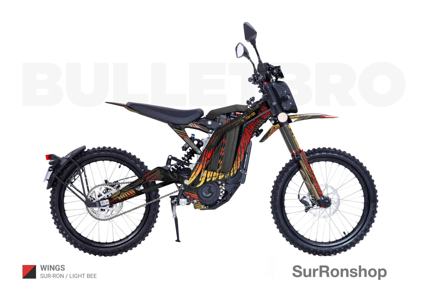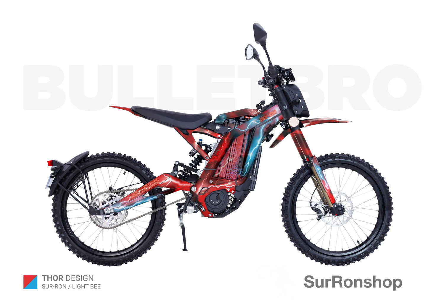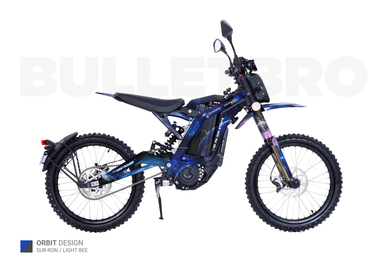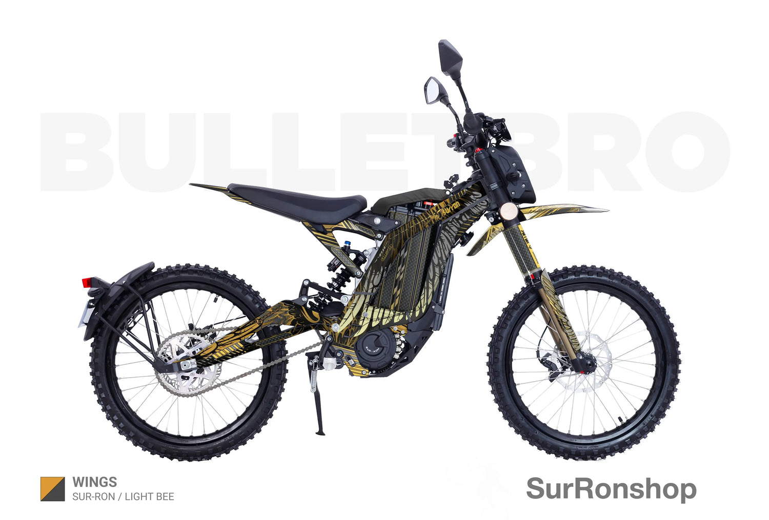 - "Design from the catalog ( 1-84 ) without logos / with your logos" - we remove small Surronshop x bulletbro logos from the decals or replace those with your logos