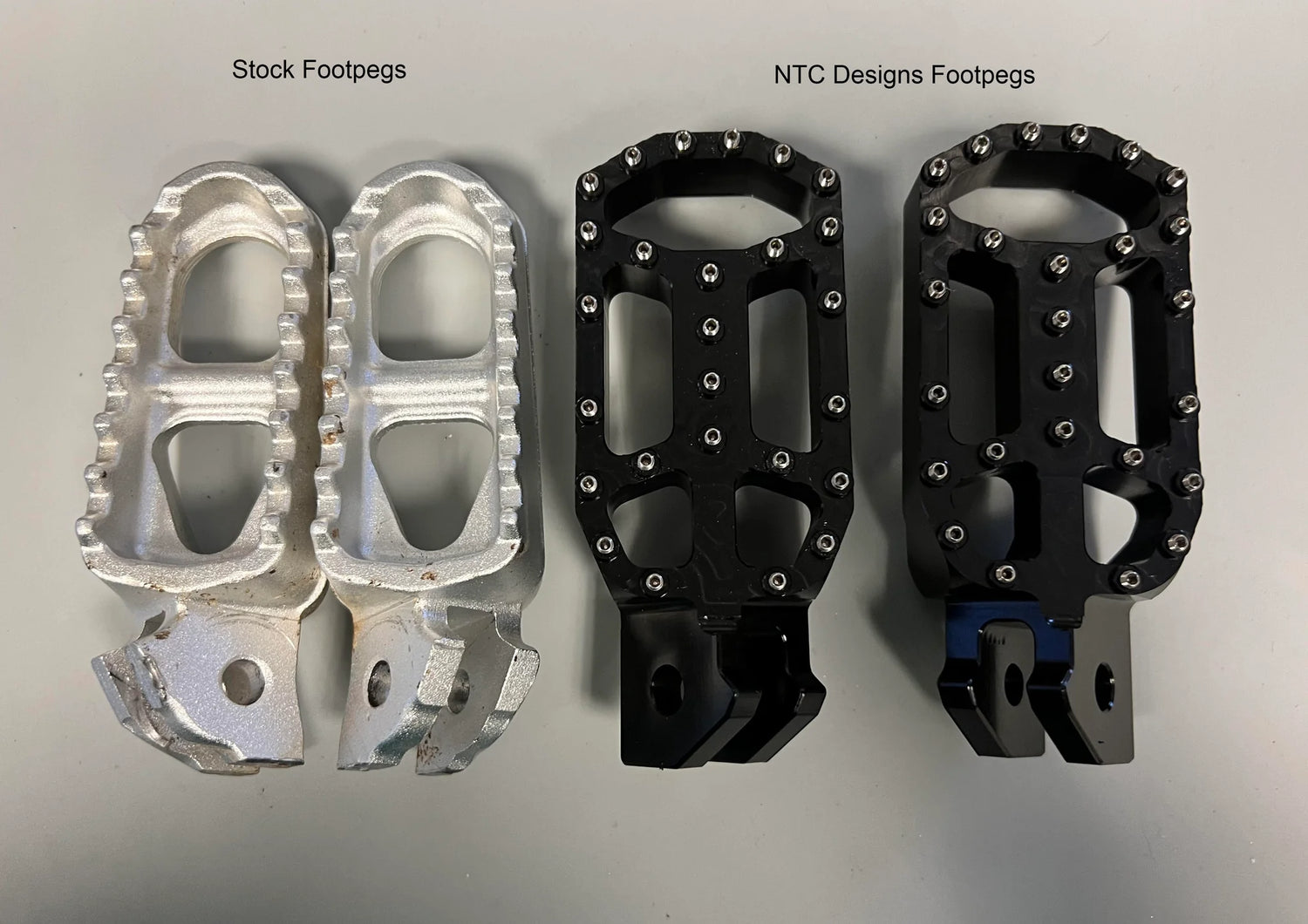These NTC Designs Sur Ron and Segway foot pegs are made out of heavy duty CNC 7075 billet aluminum for durability. These foot pegs are designed to be wider so its more comfortable and will make riding easier in different terrain such as heavy duty off road riding.