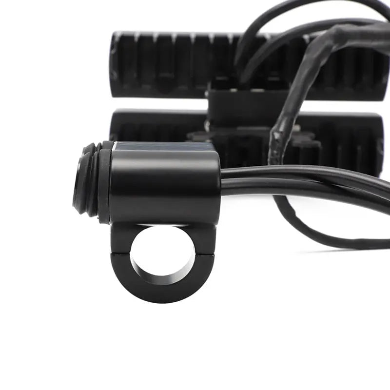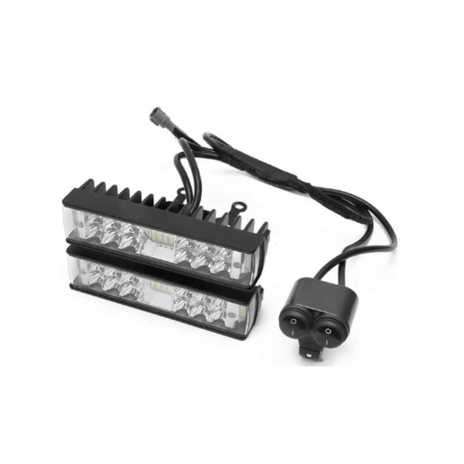 - В комплект поставки входит монтажный кронштейн, двойной переключатель включения/выключения и 2 мощные фары.